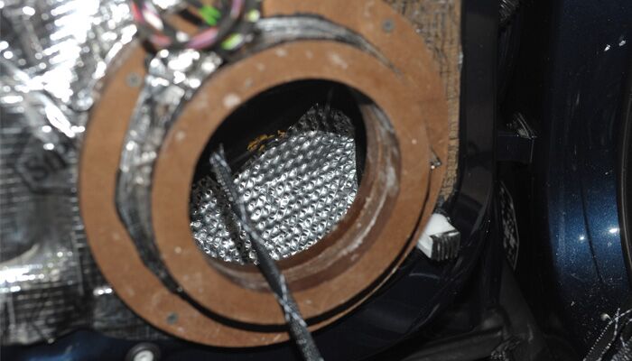既然是改装音响,那么非常有必要做四门隔音,门板内层使用俄罗斯进口全球第一隔音品牌中的STP V卫士,用烤抢加热之后粘贴到门板内层能明显增强门板厚度。门板外层使用STP I卫士将门板密封成一个箱体,位喇叭提供一个良好的播放环境。