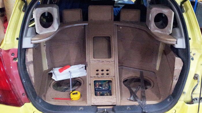 朝向尾厢后面的3台显示器,演示时打开尾厢就可以观看。
