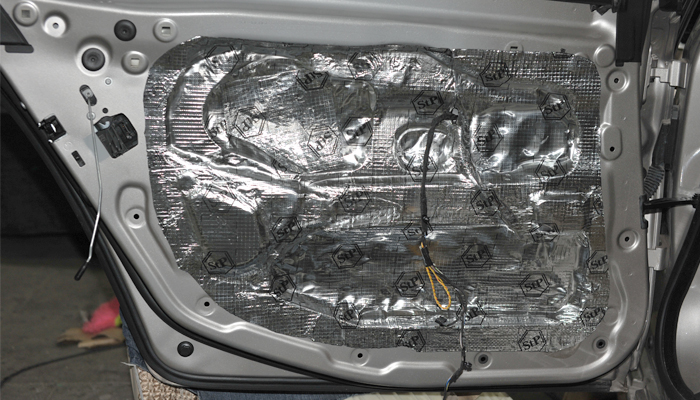 本次主要对引擎盖、翼子板、四门、底板、尾箱做了隔音处理。汽车检车和保护工作做好后,就开始施工。