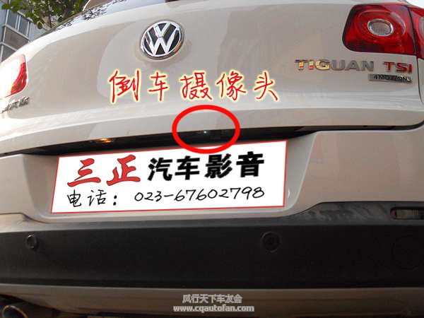 途观原车虽然配有倒车雷达系统,但是无法真实反映出障碍物的大小、位置,所以车主决定再加装一只可视倒车摄像头。