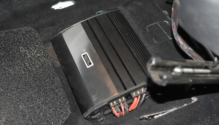 经和车主商量后,技工师傅决定将功放安装在正驾驶座下,这样既不占用空间,有方便调节。