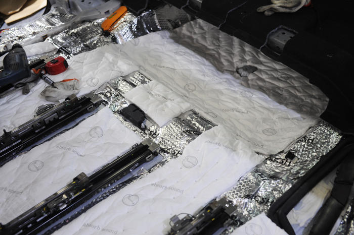 既然决定要做隔音,那就一次性把整车都做了。隔音材料选用的是俄罗斯STP舒适系列CSH银卫盾加锐宁吸音棉,止振吸音效果更好。