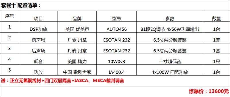全新2019版音响改装方案震撼来袭,我们从音质效果、音乐风格、价格等各方面综合考虑,精心搭配出了十几款音响升级配置方案,有适合听流行音乐的,也有发烧人声的,还有综合类的,当然更少不了摇滚风格的。价格方面,从千元入门级的到万元级发烧的应有尽有,欢迎挑选,欢迎来店现场试听,总有一款适合您!