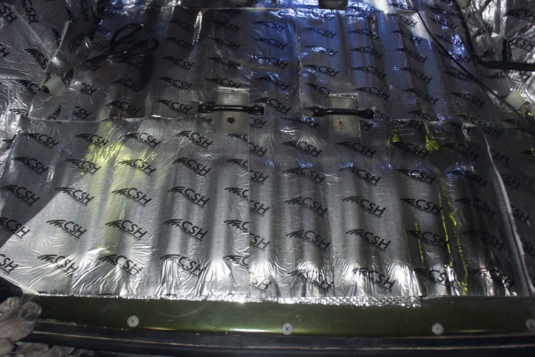首先是正副驾驶地板的隔音,选用的是俄罗斯STP的CSH小炸弹和CSH银卫盾。听重庆三正的技术人员讲正副驾驶地板隔音能够缓解中央底盘在高速行驶时由于钣金构件的振动引起的共鸣,减少轮胎转动产生的路面噪音传递,有效降低路噪,亦能降低发动机噪音。