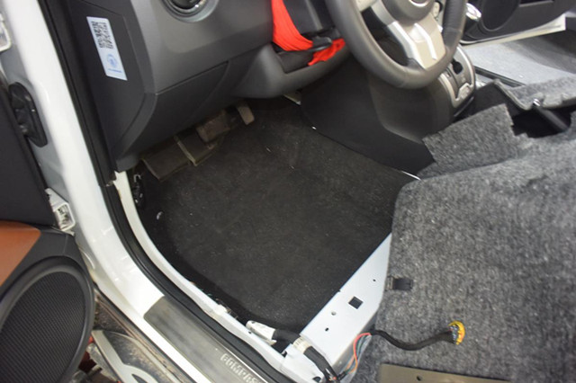 拆掉正副驾驶地毯后,先将地板钣金表面清洁干净。