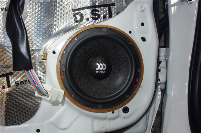 隔音完成以后前声场摩雷玛仕舞的安装,摩雷玛仕舞拥有纯净细腻的高音表现,圆润的中频效果非常适合聆听Hi-Fi人声歌曲,玛仕舞的中低频富有质感而且厚度感十足,同时对音乐原声,音乐节奏等都可以清晰地表现,失真度很低,是喇叭升级的首选。